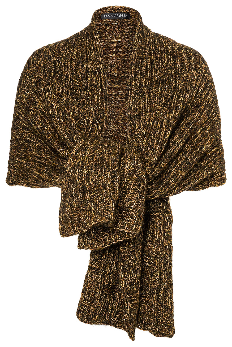 Lana Grossa Puno Due (63% хлопок, 37% альпака (беби), длина нити, 210 m/50 g), 250 г нуга/чёрно-коричневый (цв 6) и 250 г мягко-желтый/легко коричневый (цв 7); сп. № 7.