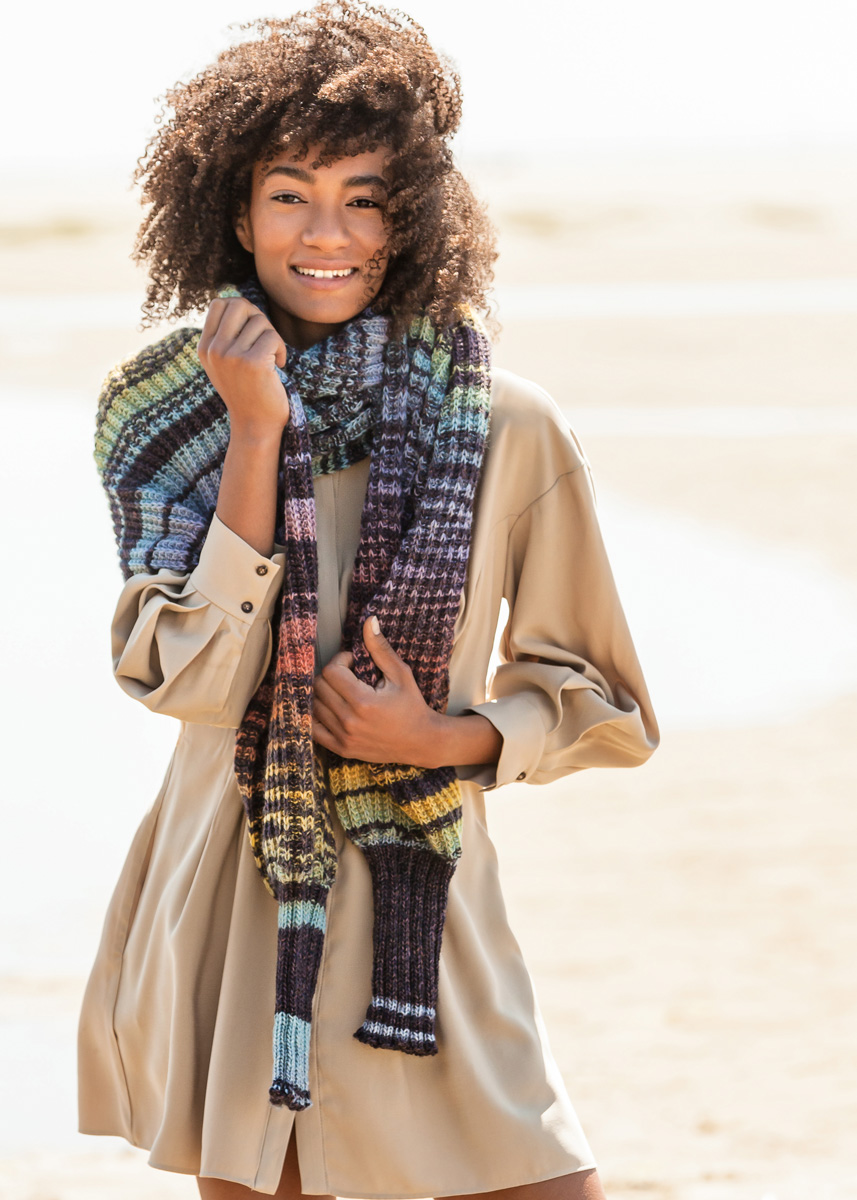 Lana Grossa Gomitolo Bene (60% меринос, 40% полиакрил, длина нити 700 m/200 g), 400 (600) г лососевый/ чёрно-коричневый/ жёлтый/ хаки/серо-синий (цв 751); 1 кр. сп. № 5, длиной 80 см и 1 чул. сп. № 4,5