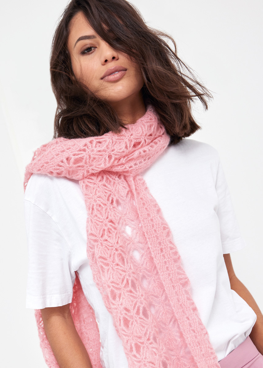 Lana Grossa Setasuri (69% альпака Suri, 31% шёлк, длина нити 212 m/25 g), 100 г розовый (цв 8); 1 крючок № 4.