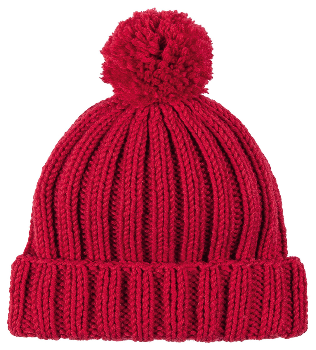 100 г вишнево-крас- ной (цв. 44) пряжи Bingo (100% шерсти, 80 м/50 г) фирмы Lana Grossa; чулочные спицы № 5; набор для изготовления пом- понов диаметром 6,5 см