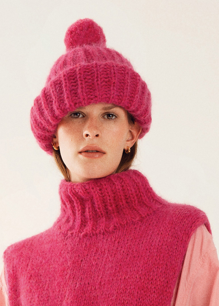 Lana Grossa „Brigitte No. 2“ (47% альпака, 45% хлопок, 8% шерсть; длина нитки 140 m/50 g), 100 г пинк (цв 19); Lana Grossa „Brigitte No. 3“ (40% мохер, 37% шерсть, 23% полиамид; длина нитки 100 m/25 g), 50 г пинк (цв 28); чул. сп. № 6