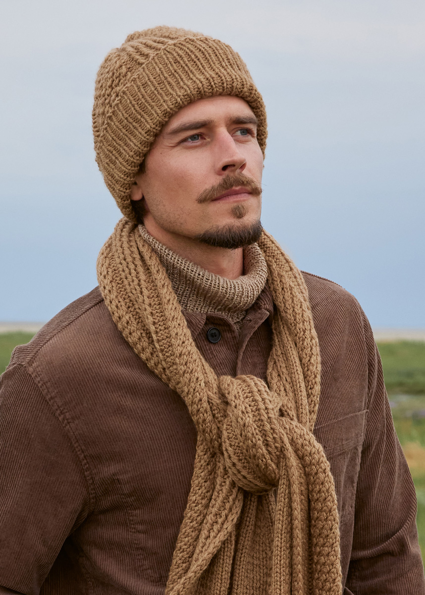 Lana Grossa Cool Merino Big (90% меринос, 10% полиамид, длина нити 90 m/50 g), 100 г легко коричневый (цв 216); 1 чул. сп. № 5 и 7.