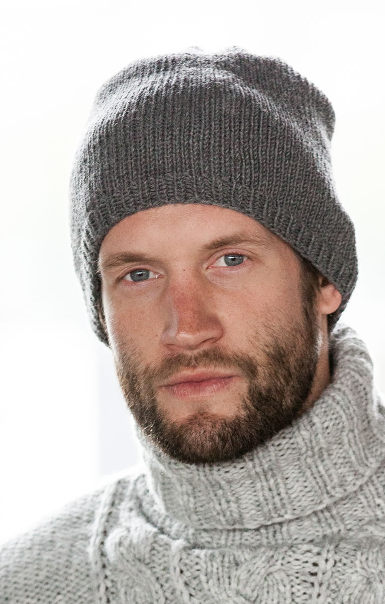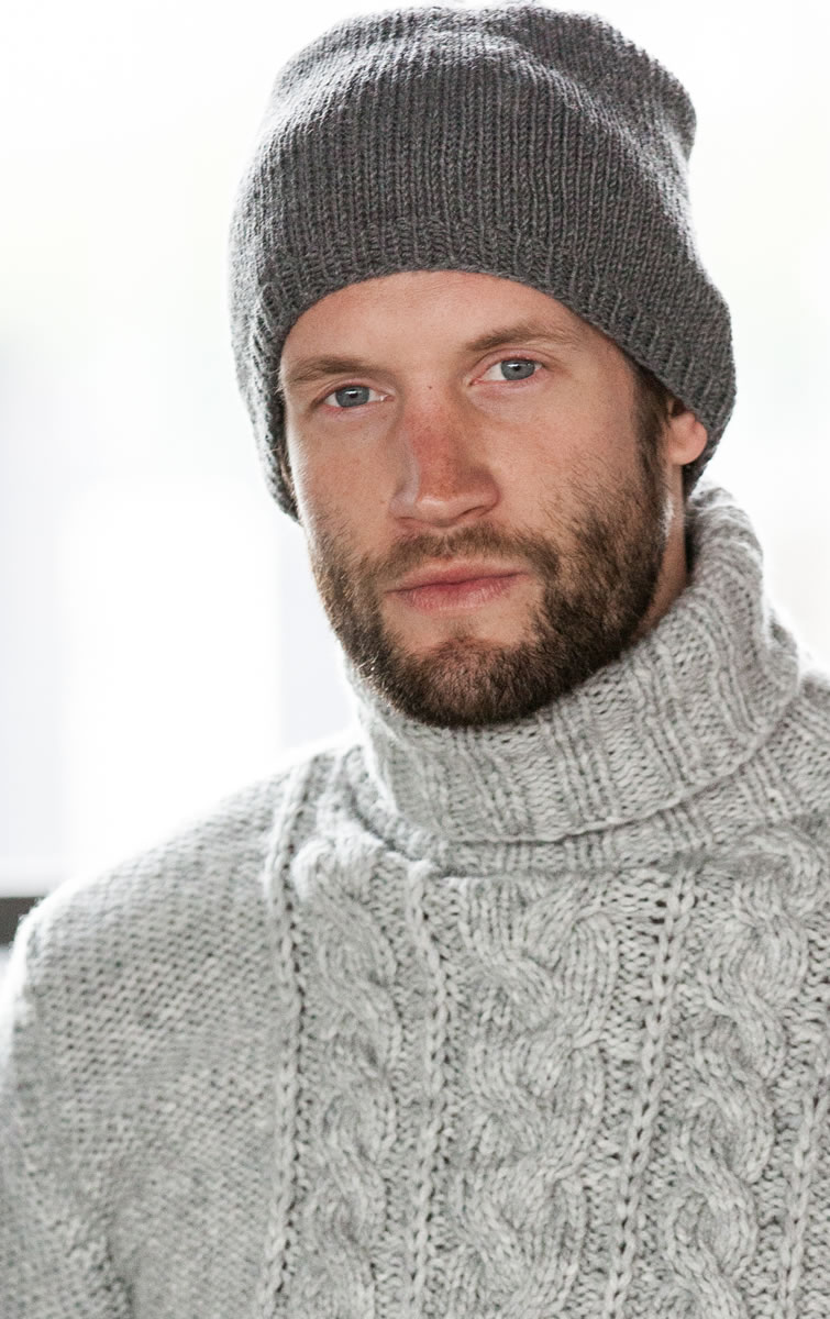 Такой пуловер с высоким воротником серебристо-серого цвета актуален во все времена. Он прекрасно сочетается с джинсами, чинос и брюками до щиколотки. Дополните образ подходящей шапкой, которую тоже можно связать самим. (Обхват головы 54–56 см)