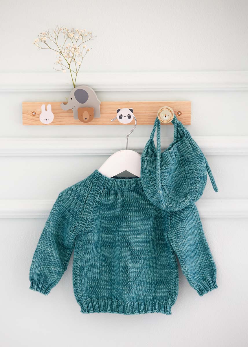 50 (50/50/100) г петрольной (цв. 7179) пряжи Cool Wool Big Vintage (100% шерсти мерино экстрафайн, 120 м/50 г) фирмы Lana Grossa; чулочные спицы № 3,5 и № 4; вспомогательная спица для кос.