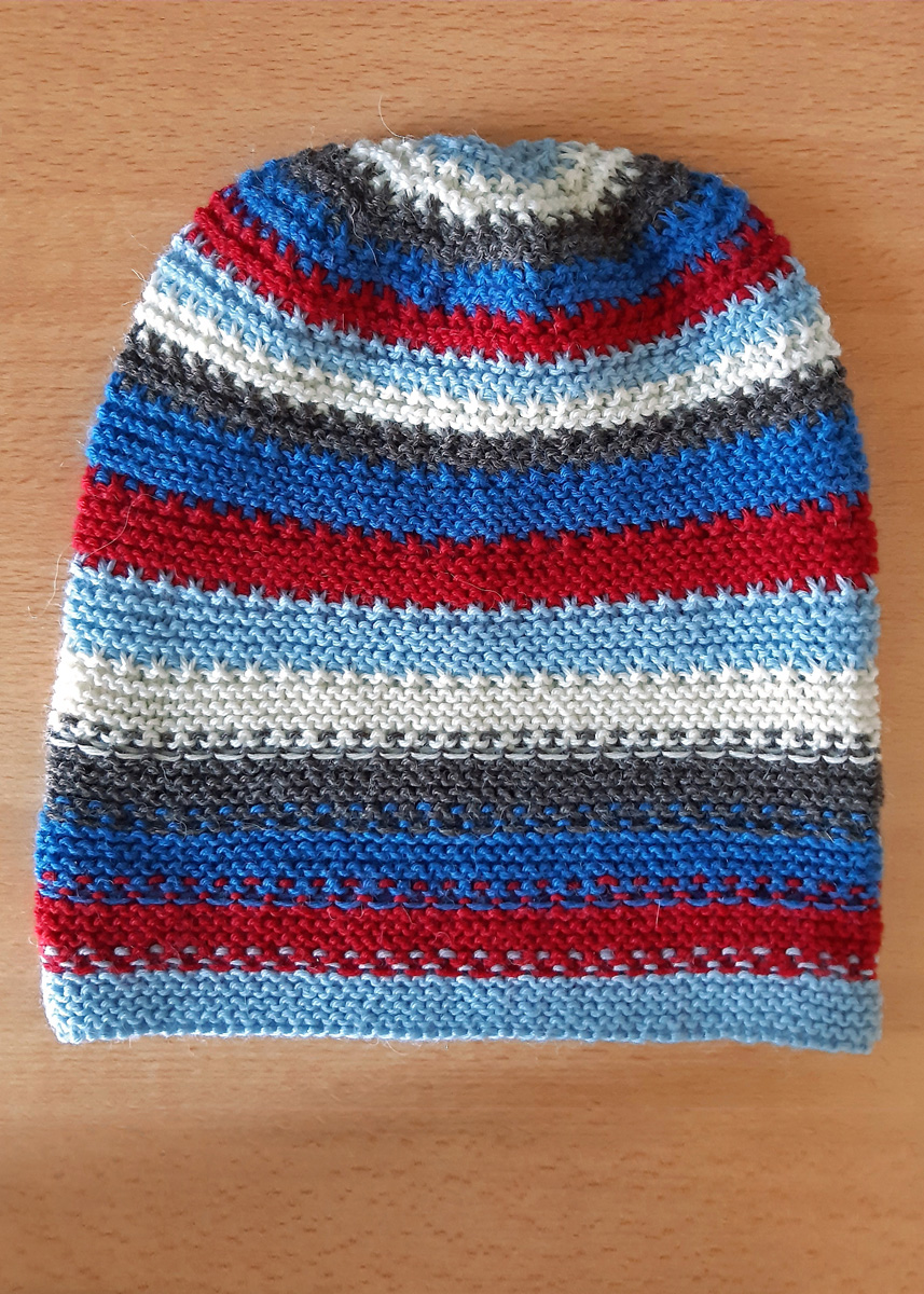 Lana Grossa-Qualität „Landlust Alpaka Merino 160“ (50% беби альпака, 50% шерсть меринос, длина нити 160 m/50 g), по 50 г чисто белый (цв 401), серо коричневый (цв 405), голубой (цв 417), светло голубой (цв 418) и красный (цв 419); 1 чул. сп. № 4