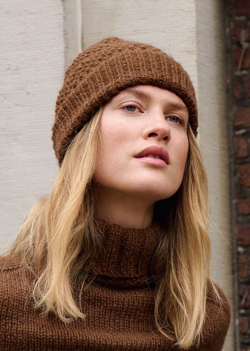100 (150/150) г шоколадно-коричневой (цв. 13) пряжи Natural Lama Chunky (100% шерсти лама бэби, 70 м/50 г) фирмы Lana Grossa; чулочные спицы № 4,5 и № 5,5; 6 маркеров для петель (МП).