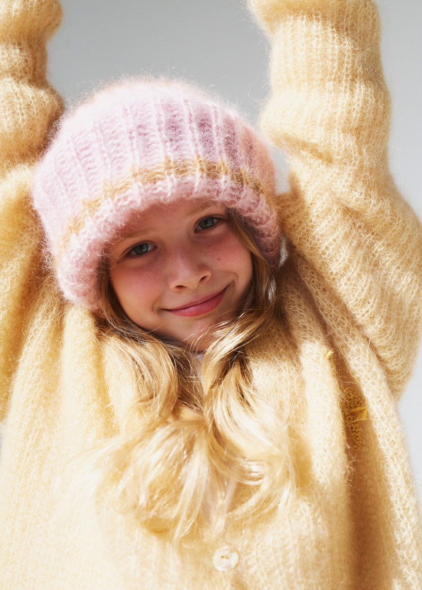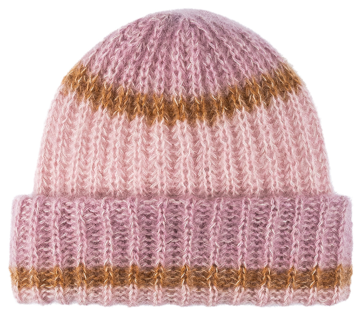 25 г розовой (цв. 85), 25 г золотисто-коричневой (цв. 115), 25 г серо-лиловой (цв. 152) и 25 г нежно-ли- ловой (цв. 87) пряжи Silkhair (70% мохе- ра, 30% шелка, 210 м/25 г) фирмы Lana Grossa; чулочные спицы № 5