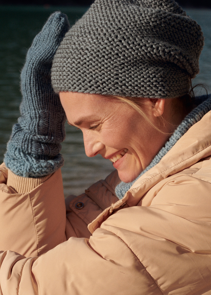 150 г темно-серой меланжевой (цв. 25) пря- жи Superbingo (100% шерсти, 55 м/50 г) фирмы Lana Grossa; чулочные спицы № 6