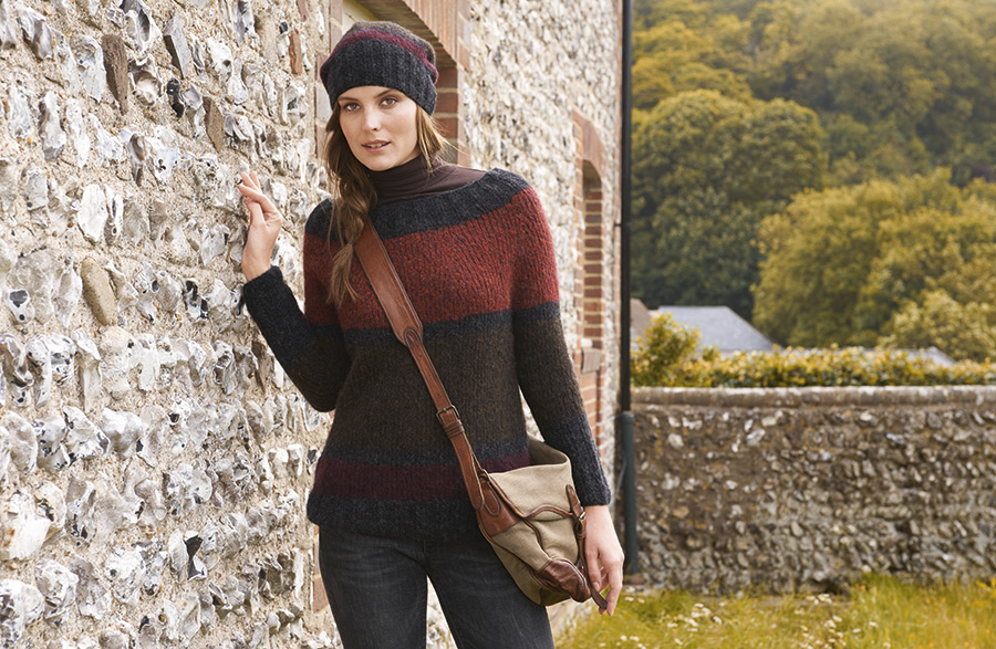 Почему широкие полосы так популярны? Потому что это – спортивная классика, модная и в то же время элегантная. Я ношу этот пуловер с шапочкой… А тебе нравится? (Обхват головы: 54–56 см; высота: 28 см)
