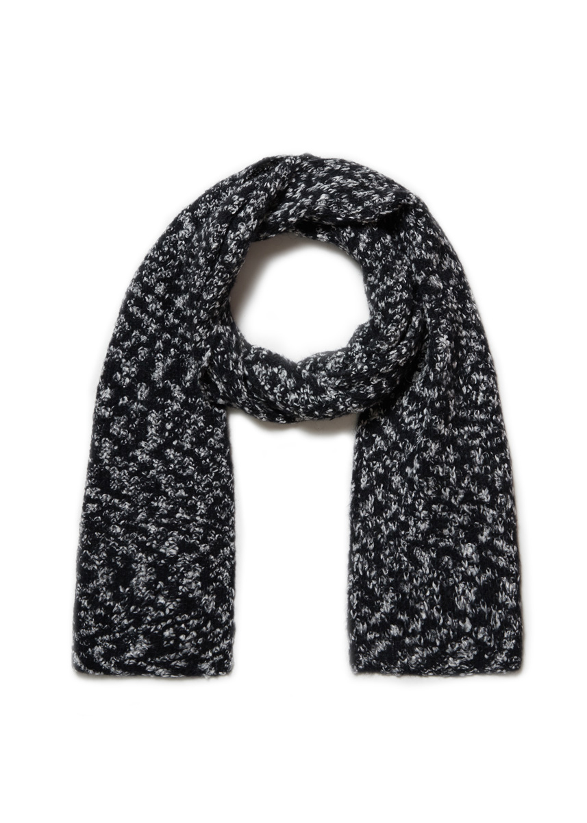 200 г черной/белой су- ровой (цв. 12) пряжи Lala Berlin Buffy (47% альпака бэби, 30% хлопка, 23% полиамида, 225 м/50 г) фирмы Lana Grossa; прямые спицы № 4.