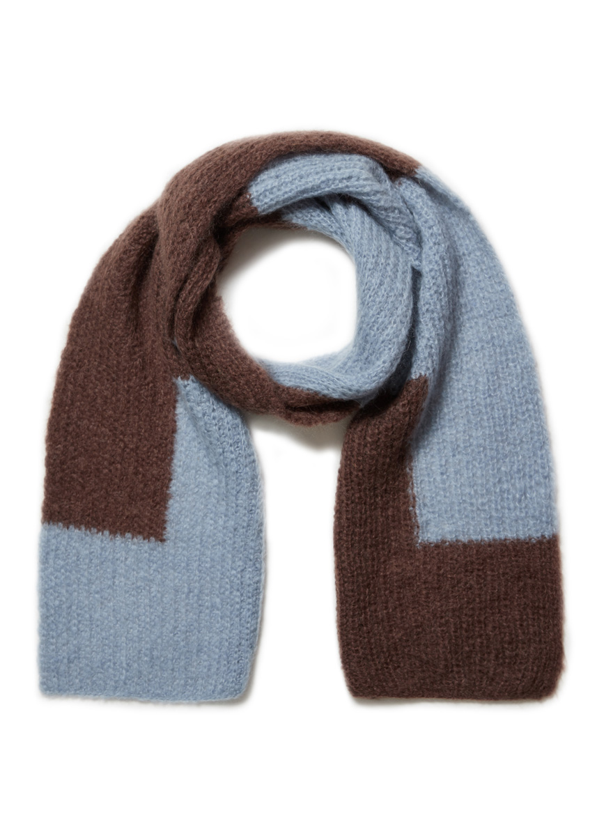 по 100 г серо-синей (цв. 4) и темно-коричневой (цв. 12) пряжи Mohair Moda (70% мохера суперкид, 20% шерсти мерино суперфайн, 10% полиамида, 140 м/50 г) фирмы Lana Grossa; прямые спицы № 5 и № 6.