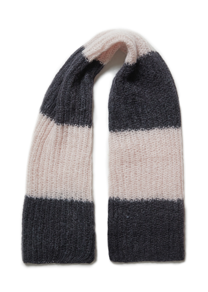 по 100 г бежевой (цв. 11) и черной (цв. 16) пряжи Mohair Moda (70% мохера суперкид, 20% шерсти мерино суперфайн, 10% полиамида, 140 м/50 г) фирмы Lana Grossa; прямые спицы № 6,5.
