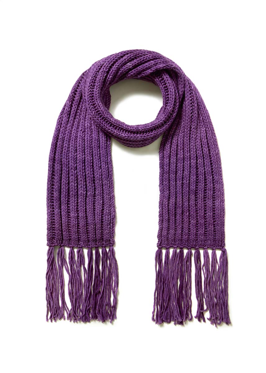 700 г фиолетовой (цв. 503) пряжи Vintage Superchunky (100% шерсти мерино, 80 м/100 г) фирмы Lana Grossa; прямые спицы № 6 и № 9, крючок № 8 для привязывания кистей