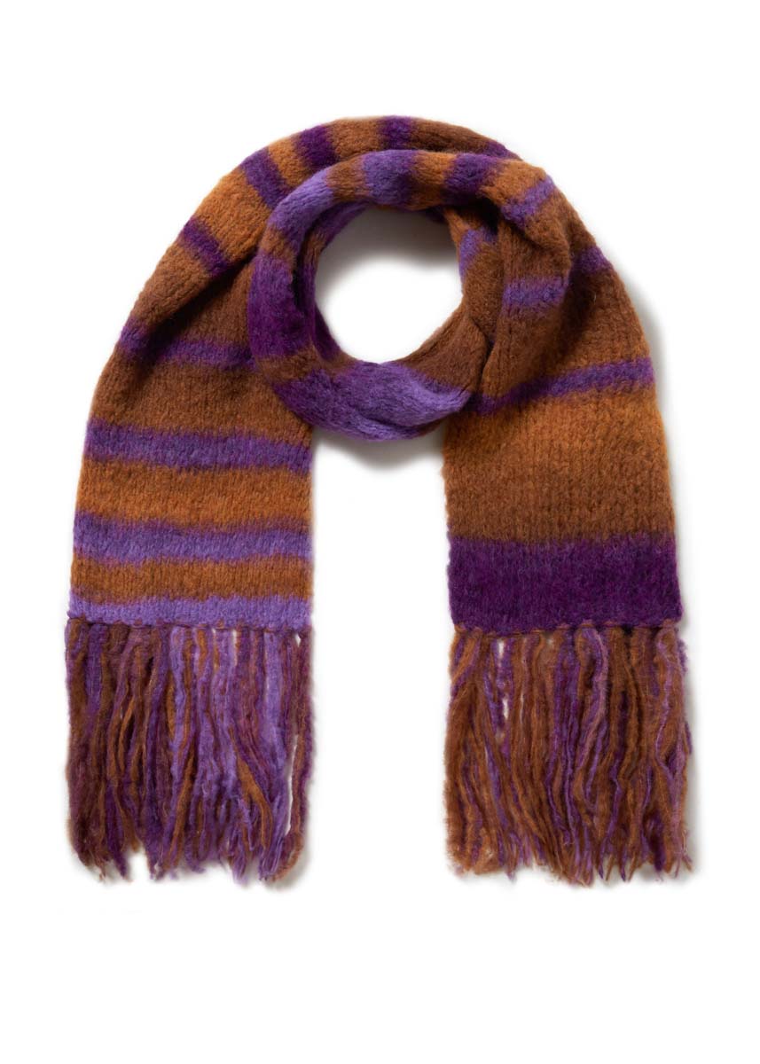 200 г лиловой/цвета хаки/цвета умбры/темно-фиолетовой/се- ро-лиловой (цв. 4) пряжи Gigante (70% альпака суперфайн, 30% полиамида, 300 м/100 г) фирмы Lana Grossa; прямые спицы № 7, крючок № 6