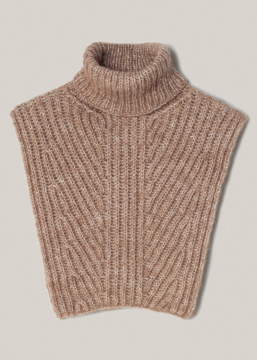 150 (200) г цвета верблюжьей шер- сти/бежевой (цв. 7) пряжи Natural Alpaca Pelo (63% хлопка, 31% альпака бэби, 6% шерсти мерино, 125 м/ 50 г) фирмы Lana Grossa; прямые спицы № 4, круговые спицы № 4 длиной 40 см