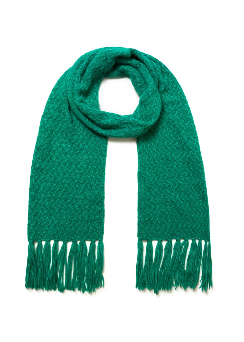 350 г бледно-зеленой (цв. 24) пряжи Alpaca Air (62% альпака бэби, 27% полиамида, 11% шерсти мери- но экстрафайн, 140 м/50 г) фирмы Lana Grossa; прямые спицы № 7, крючок № 8 для привязывания кистей