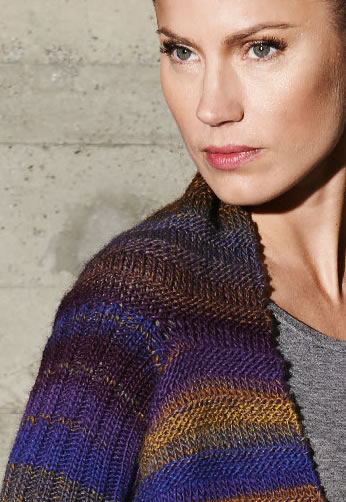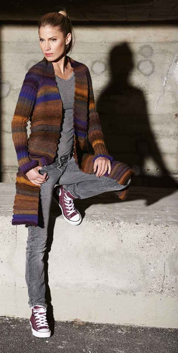 350 (400) г синей/коричневой/желтой/лиловой меланжевой (цв. 6) пряжи Cinque Multi (60% овечьей (мериносовой) шерсти, 40% полиакрила, 150 м/50 г) фирмы Lana Grossa; прямые спицы № 5; набор чулочных спиц № 4