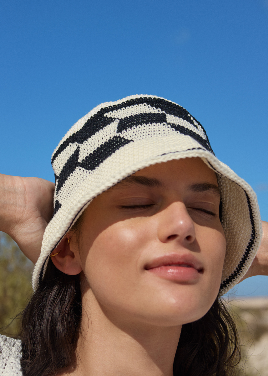 Lana Grossa-Qualität „Cotone” (100 % хлопок, длина нити = ок. 125 m/50 g): ок. 100 г чисто белый (цв. 28) и ок. 50 г чёрный (цв. 21); 1 крючок № 4.