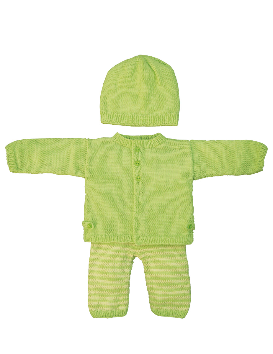 Lana Grossa Cool Wool Baby (100 % шерсть, длина нитки 220 m/50 g) 50 г лайм (цв 228) и 50 г ванилевый (цв 218); сп. № 3,5, кр. сп. № 3,5 длиной 40 см; резинка шириной 2 см