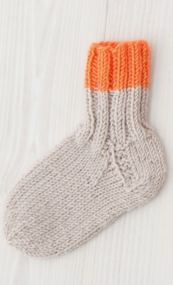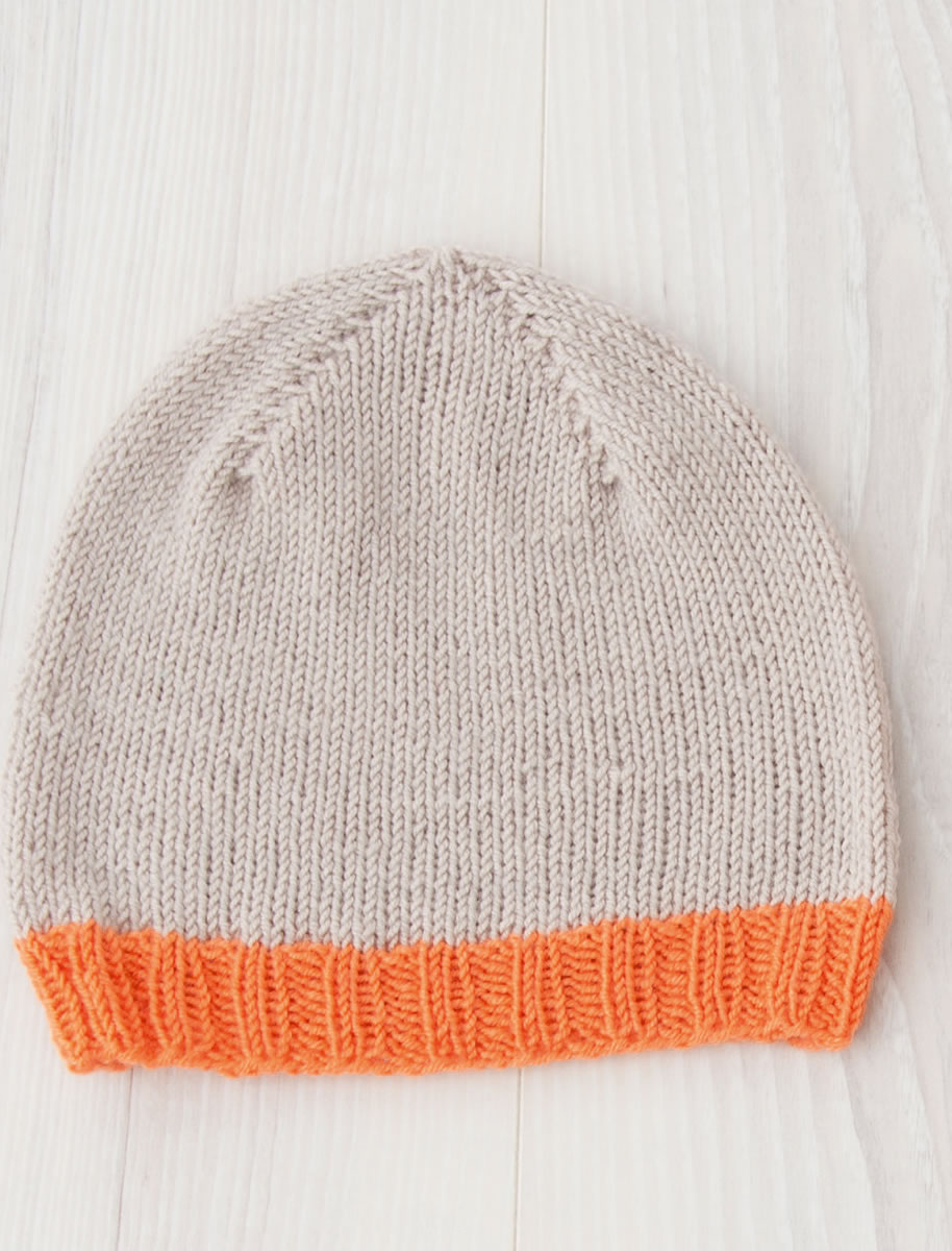по 50 г оранжевой (цв. 229) и бежевой (цв. 227) пряжи Cool Wool Baby (100% мягкой мериносовой шерсти, 220 м/50 г); прямые спицы № 3; круговые спицы № 3 длиной 40 см; набор чулочных спиц № 3; 4 пуговицы.