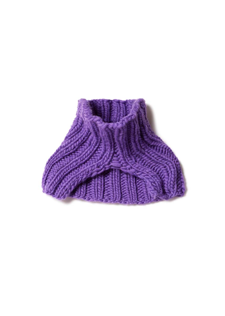 200 г фиолетовой (цв. 104) пряжи Confetti Uni (100% шерсти мерино, 50 м/100 г) фирмы Lana Grossa; прямые спицы № 12, круговые спицы № 12 длиной 60 см.