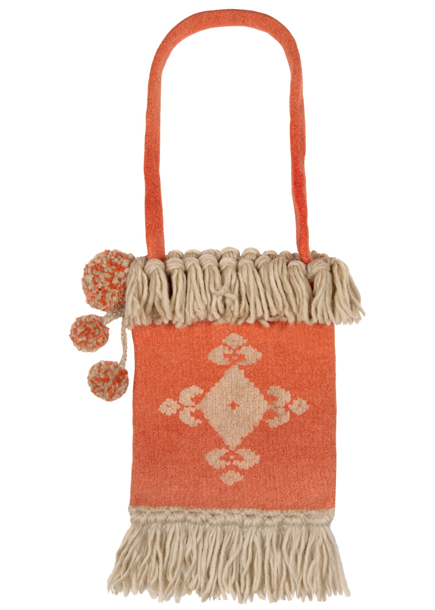 Lana Grossa Feltro (100% шерсть, длина нити 50 m/50 g), 450 г лососевый (цв 83) и 200 г бежевый (цв 24); 1 кр. сп. № 8, длиной 60 см, 2 сп. от чул. сп. № 8, 1 крючок № 6 и 9 для прикрепления бахромы, 1 набор для помпонов Lana Grossa Ø 6,5 - 8,5 см
