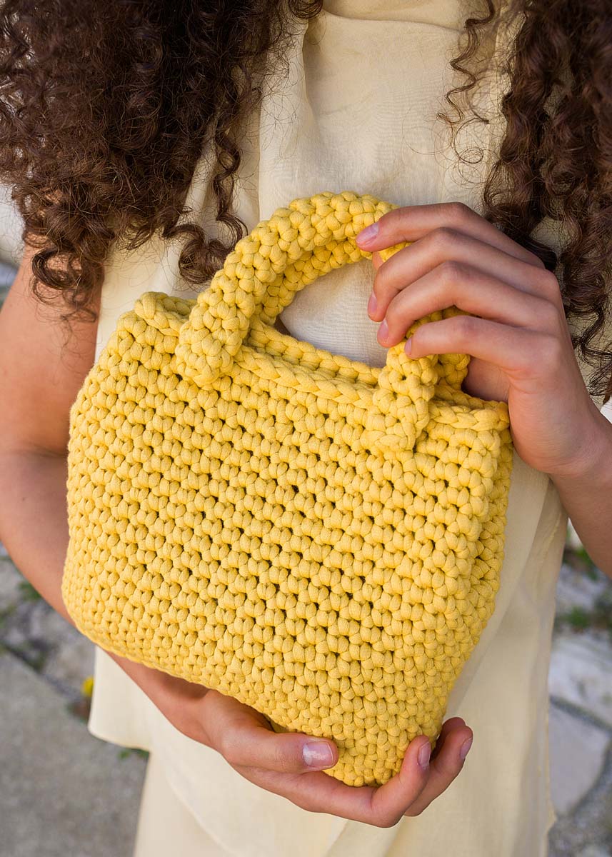 Lana Grossa The Tube (60 % Плотность вязания, 40 % нейлон, длина нитки 114 m/200 g), 400 г жёлтый (цв 24); крючок № 7–8