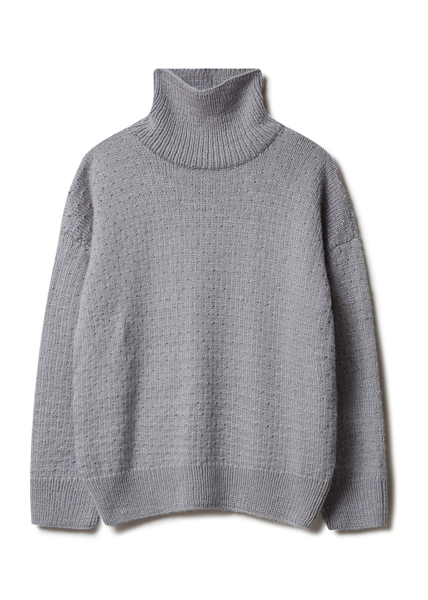 450 (500–550–600) г светло-серой (цв. 3) пряжи Setosa (65% шерсти мерино суперфайн, 35% шелка, 150 м/50 г) фирмы Lana Grossa; прямые спицы № 4,5, а также круговые спицы № 4,5 длиной 40 см