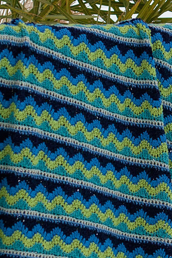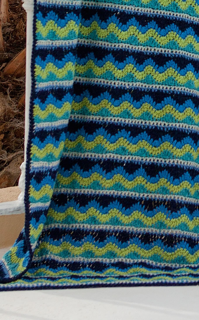 Покрывало с яркими геометрическими орнаментами из мягкой смесовой пряжи с матовым блеском так и манит укрыться им. Поторопитесь, иначе Вам может не хватить места…