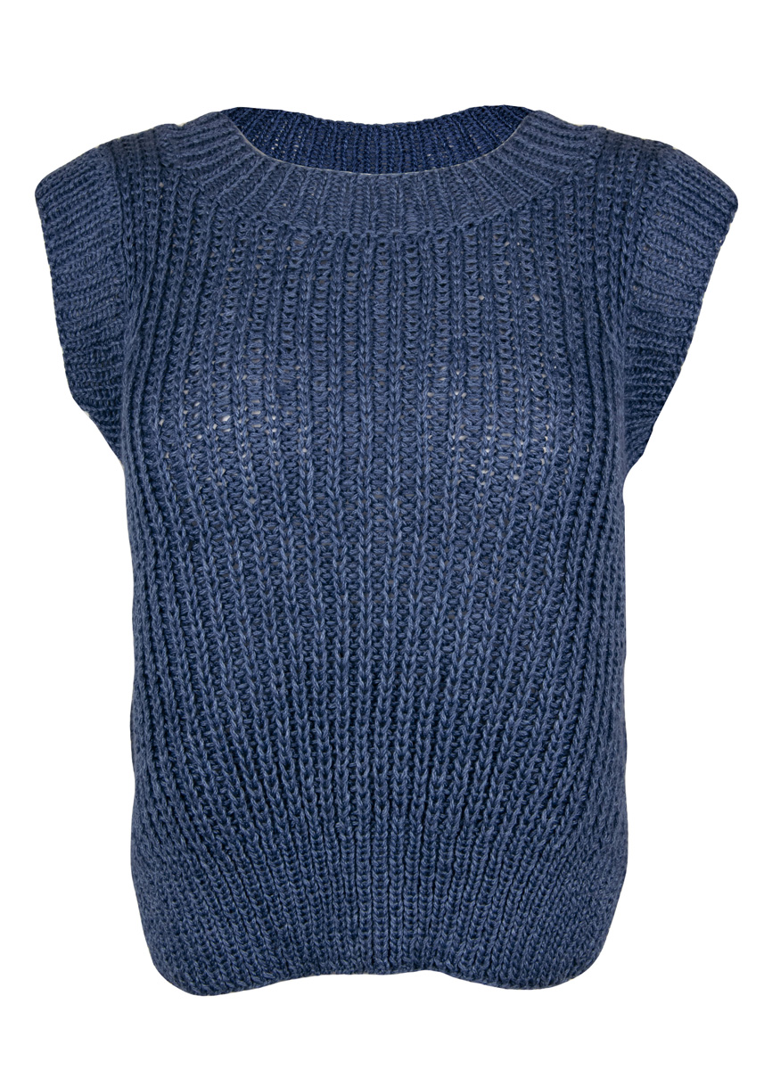 Lana Grossa-Qualität „Alta Moda Cotolana” (45 % меринос, 45 % (Pima) хлопок, 10 % полиамид, длина нити = ок. 150 m/50 g): ок. 250 (300) г темно синий (цв. 14); сп. № 5 и 6, 1 кр. сп. № 5, 50 см длиной