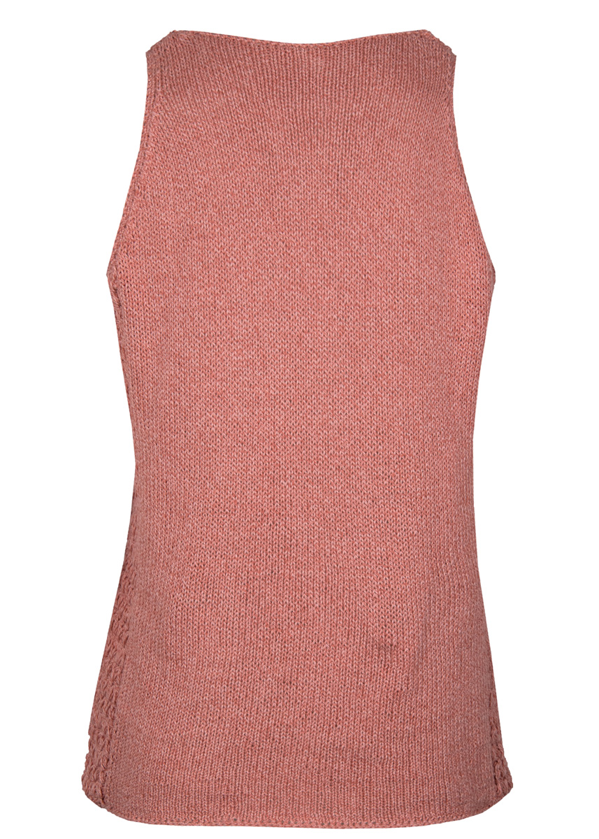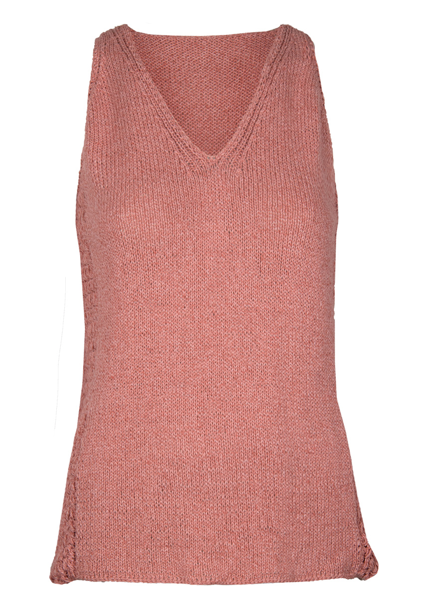 250 (300–350) г желто-розовой (цв. 13) пряжи Landlust Sommerseide (50% шелка, 50% хлопка, 170 м/50 г) фирмы Lana Grossa; прямые спицы № 4, крючок № 3,5