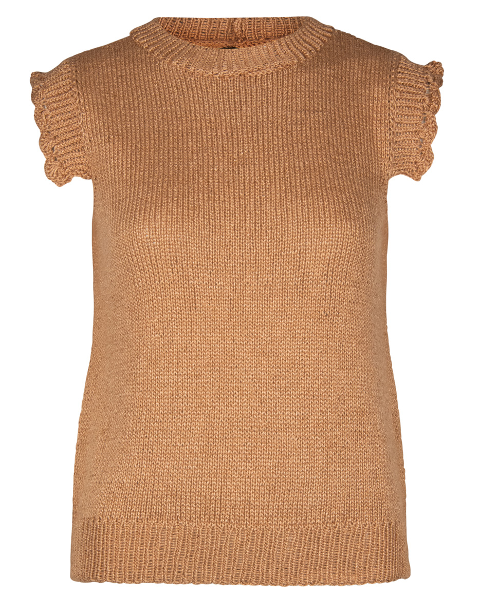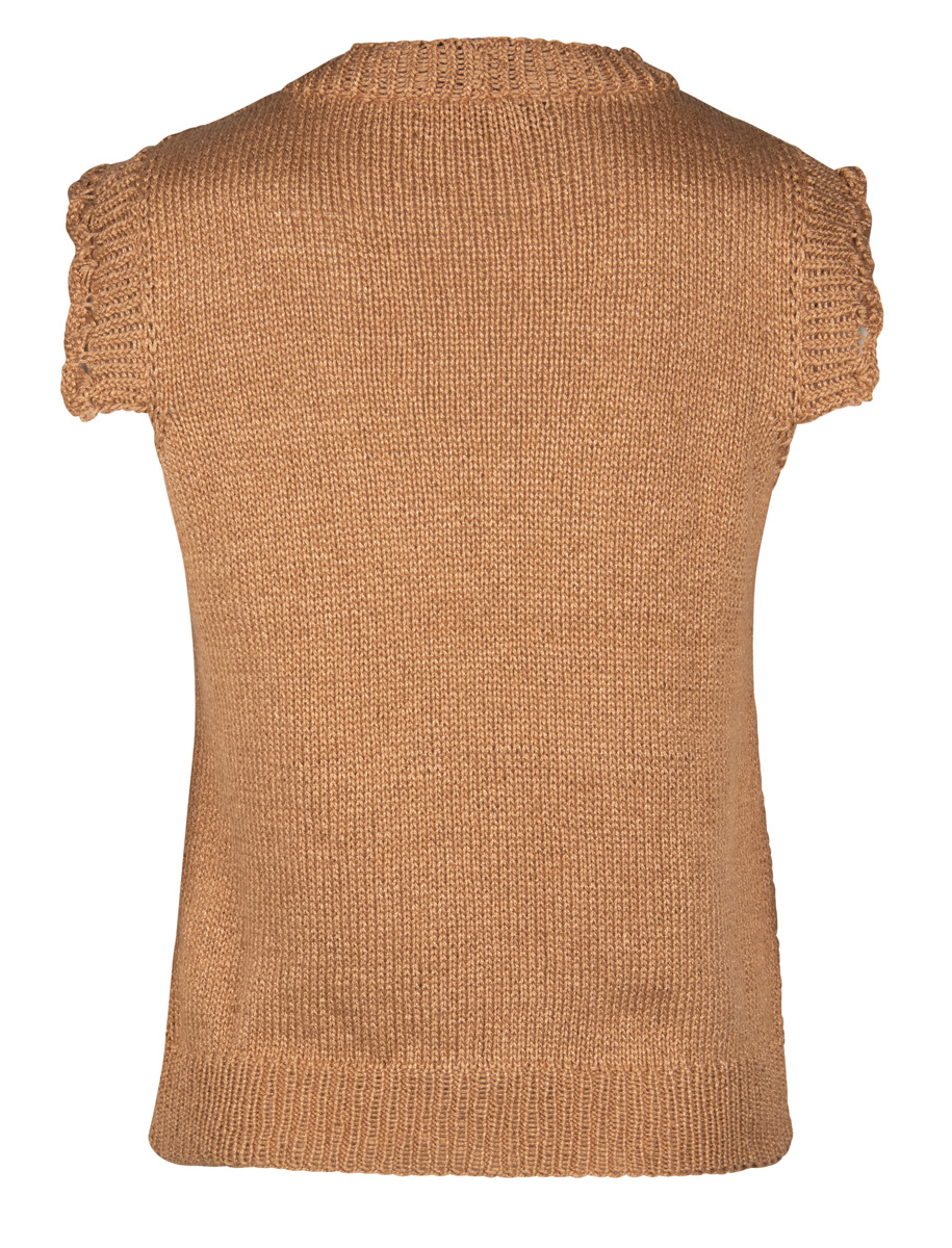 Lana Grossa-Qualität „Linarte” (40 % вискоза, 30 % хлопок, 20 % лён, 10 % полиамид, длина нити = ca. 125 m/50 g): ок. 300 (350) г легко коричневый (цв. 96); сп. № 4 и 5, 1 кр. сп. № 4, длиной 50 см