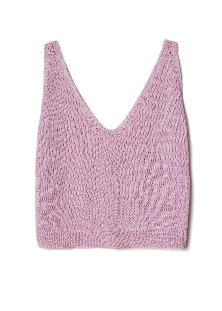 Lana Grossa-Qualität „Nastrino” (100 % хлопок, длина нити = ок. 190 m/50 g): ок. 150 (200) г розовый (цв. 6); сп. № 2,5 и 4.