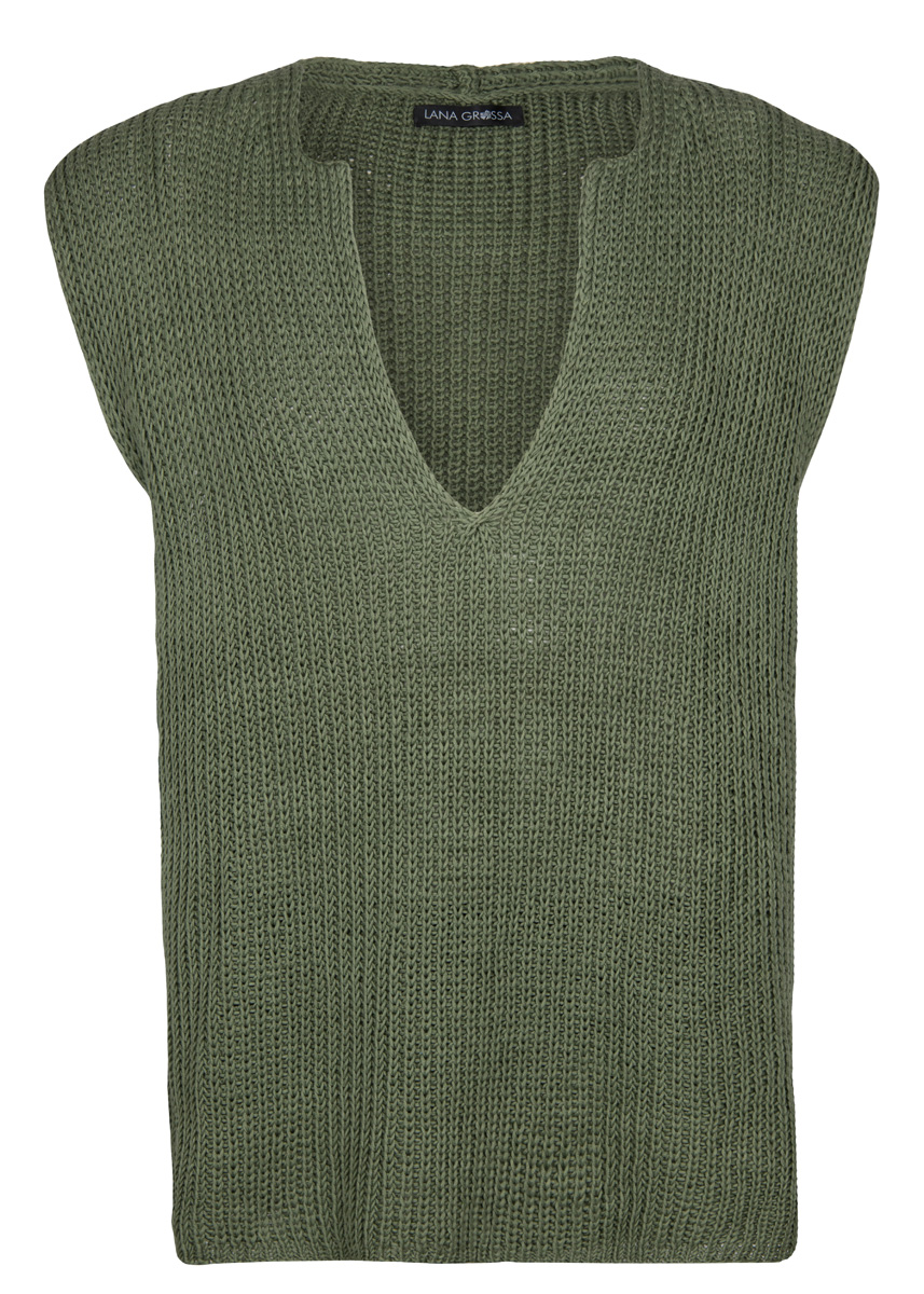550 (600–650) г цвета хаки (цв. 16) пряжи Pima (100% хлопка пима, 125 м/50 г) фирмы Lana Grossa; прямые спицы № 4, 1 вспомогательная спица