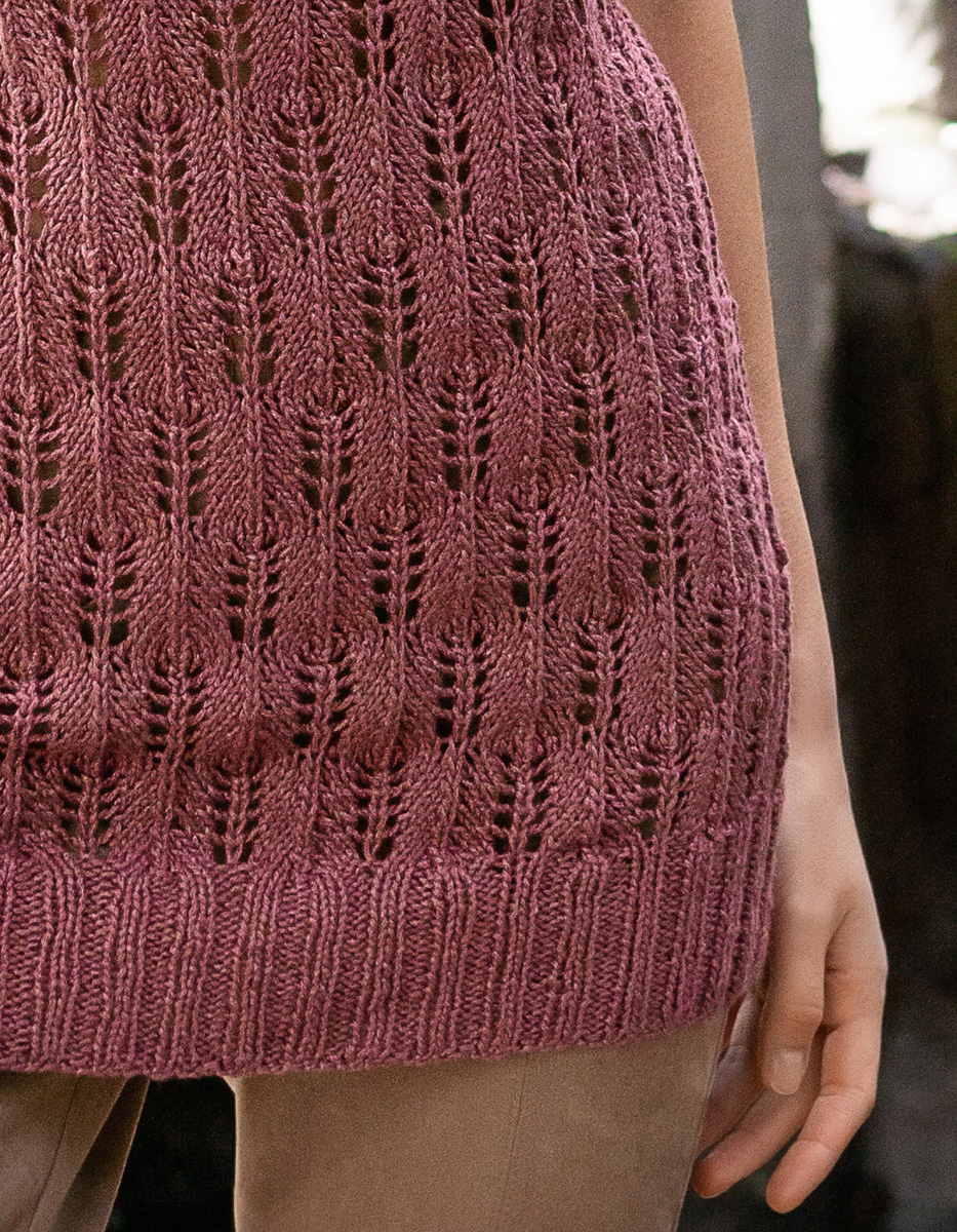 Lana Grossa-Qualität „Linarte” (40 % вискоза, 30 % хлопок, 20 % лён, 10 % полиамид, длина нити = 125 m/50 g): ок. 350 (400) г антично- красный (цв. 93); спицы № 3,5 и 4,5, кр. спицы № 4,5, длиной 60 см, крючок № 3,5