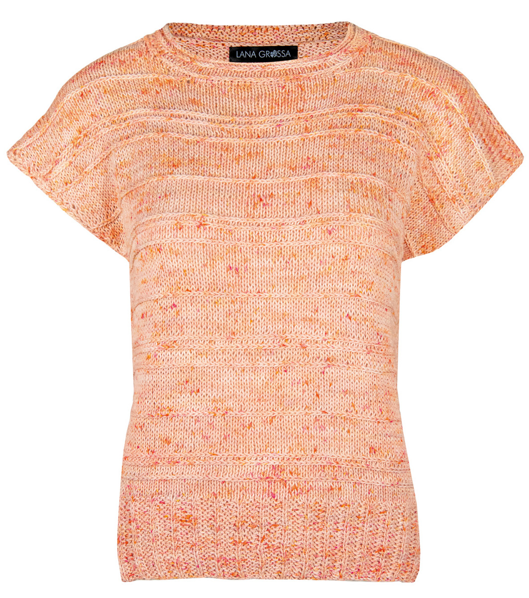 Lana Grossa Setacotone hand-dyed (50% шёлк, 50% хлопок, длина нити 340 m/100 g), 300 (300–400) г Soya (цв 903); сп. № 5, 1 кр. сп. № 4,5 и 1 крючок № 3