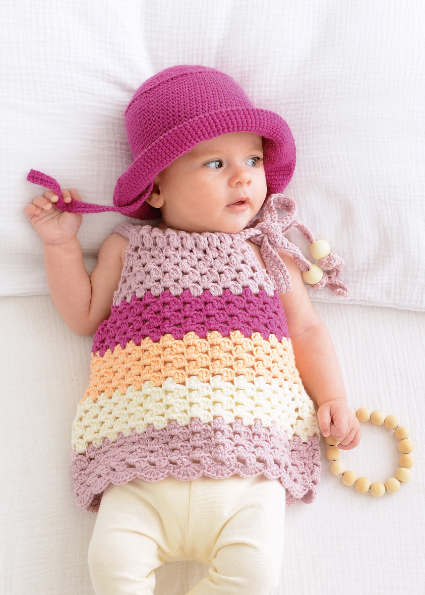 Lana Grossa Soft Cotton (70 % хлопок, 30 % полиакрил, длина нитки 140 m/50 g) 100 (100/100/150) г розовый (цв 6); 50 г абрикос (цв 1); 50 г экрю (цв 2) и 50 г цикламеновый (цв 14); крючок № 3,5; бисер 28 мм с дыркой 10 мм