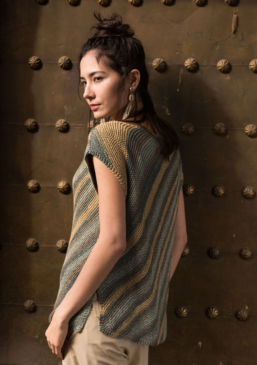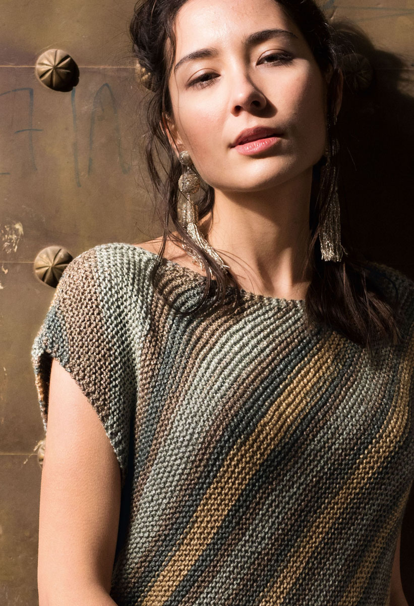 ВЯЗАТЬ по диагонали проще, чем может показаться. В результате боковых прибавлений и убавлений образуется прямоугольник. Чем длиннее становятся ряды, тем уже получаются полосы. Благодаря такой технике топ красиво облегает фигуру и кажется почти приталенным.
