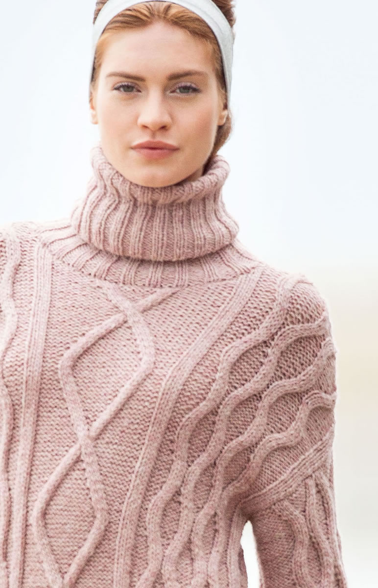 600 (650) 700 г розовой меланжевой (цв. 45) пряжи Alta Moda Alpaca (90% шерсти альпака, 5% овечьей шерсти, 5% полиамида, 140 м/50 г) фирмы Lana Grossa; прямые спицы № 5 и № 5,5, круговые спицы № 5 длиной 40 см