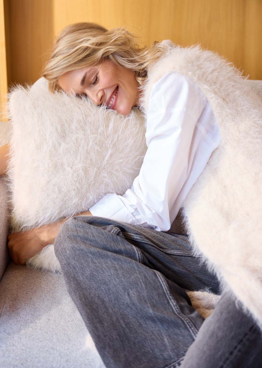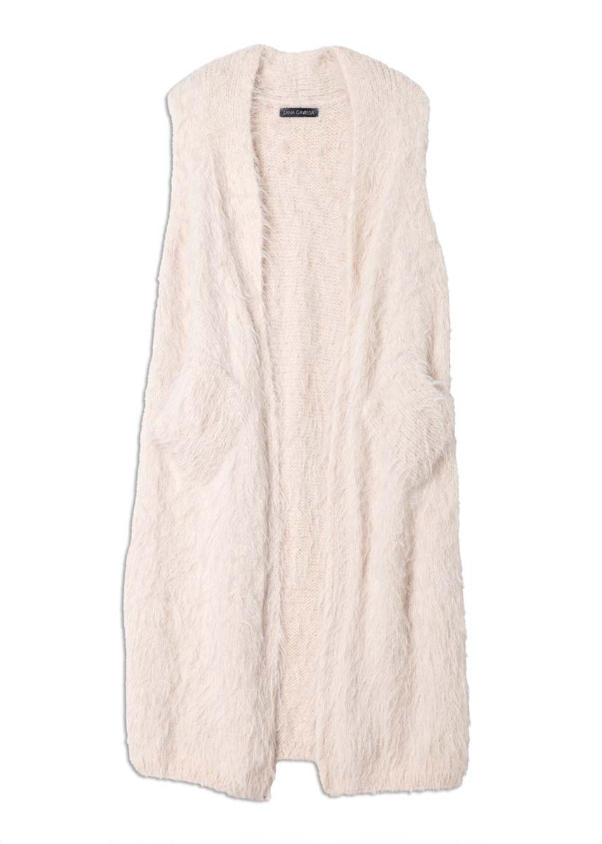 550 (600–650) г светло- бежевой (цв. 2) пряжи Basta (50% шерсти мерино, 50% полиамида, 100 м/50 г) фир- мы Lana Grossa; прямые спицы № 5 и № 6.