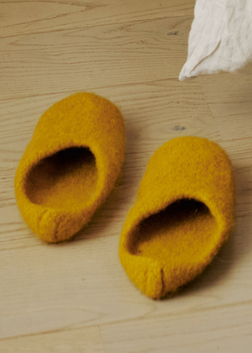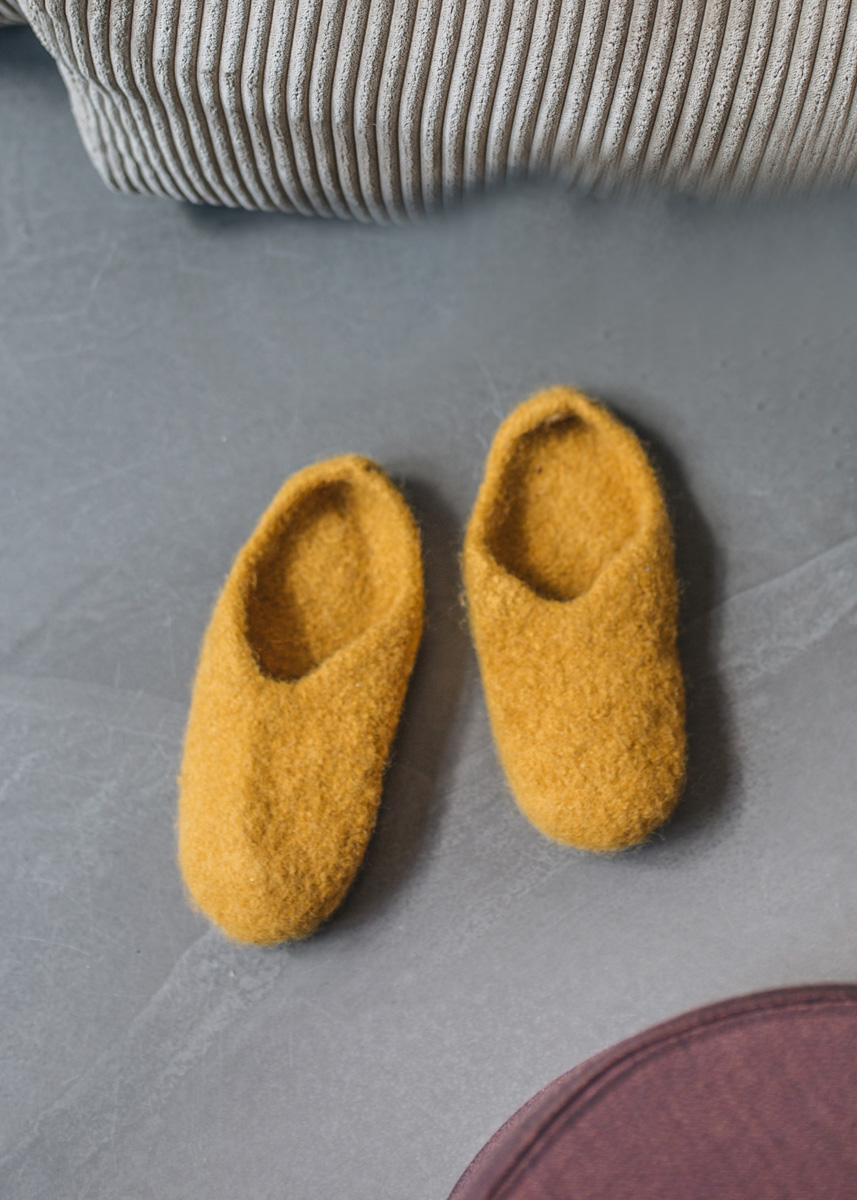 200 г горчичной (цв. 93) пряжи Feltro (100% шерсти, 50 м/50 г) фирмы Lana Grossa; пря- мые спицы № 8, чулочные спицы № 8, крючок № 7