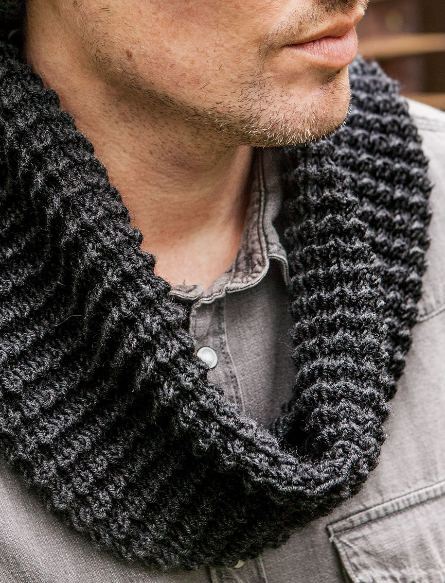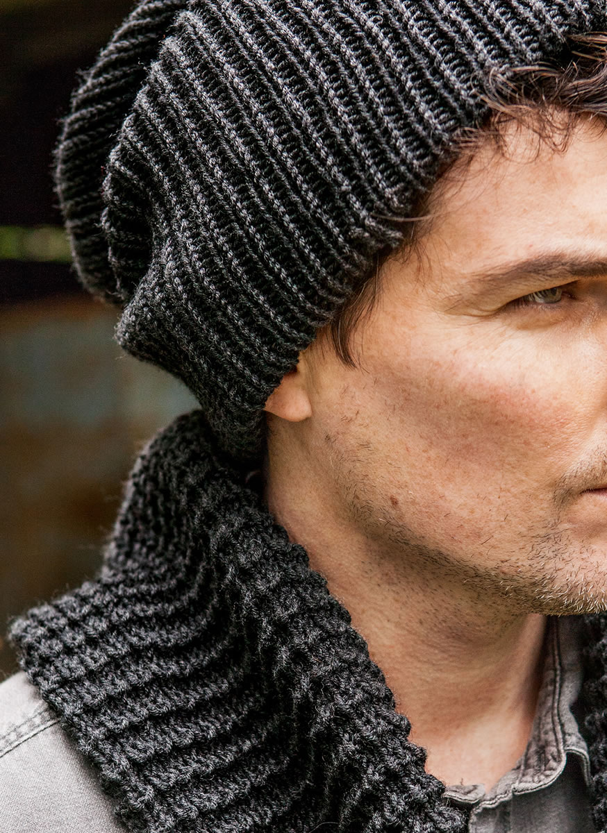 150 г антрацитной (цвет 618) пряжи Cool Wool Big фирмы Lana Grossa (100% шерсти мерино экстрафайн, 120 м/50 г); прямые спицы №4,5.