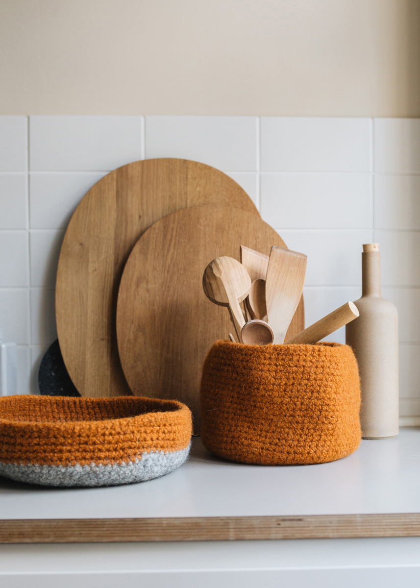 200 г янтарной (цв. 92) пряжи Feltro (100% шерсти, 50 м/50 г) фирмы Lana Grossa; крючок № 8; 1 маркер для петель