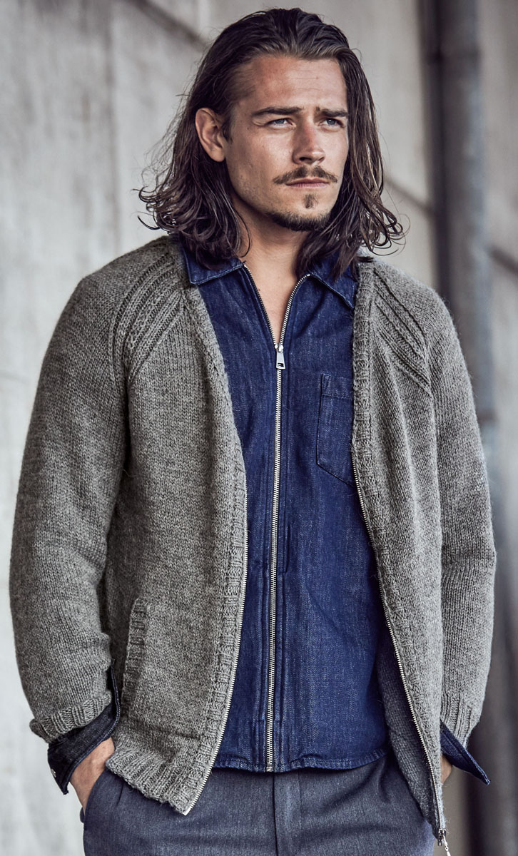 500 (550 – 600) г темно-серой (цвет 6) пряжи Cool Wool Alpaca фирмы Lana Grossa (70 % шерсти мерино экстрафайн, 30 % бэби альпака, 140 м/50 г); прямые спицы № 4,5 и 5, круговые спицы № 5 длиной 120 см, 1 застежка-молния, металлическая, разъемная, длина 50 см, цвет серый, 1 подвеска для застежки-молнии