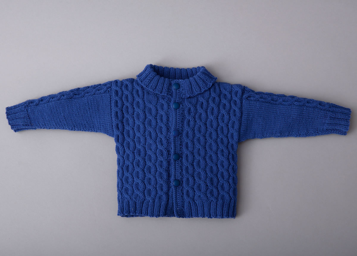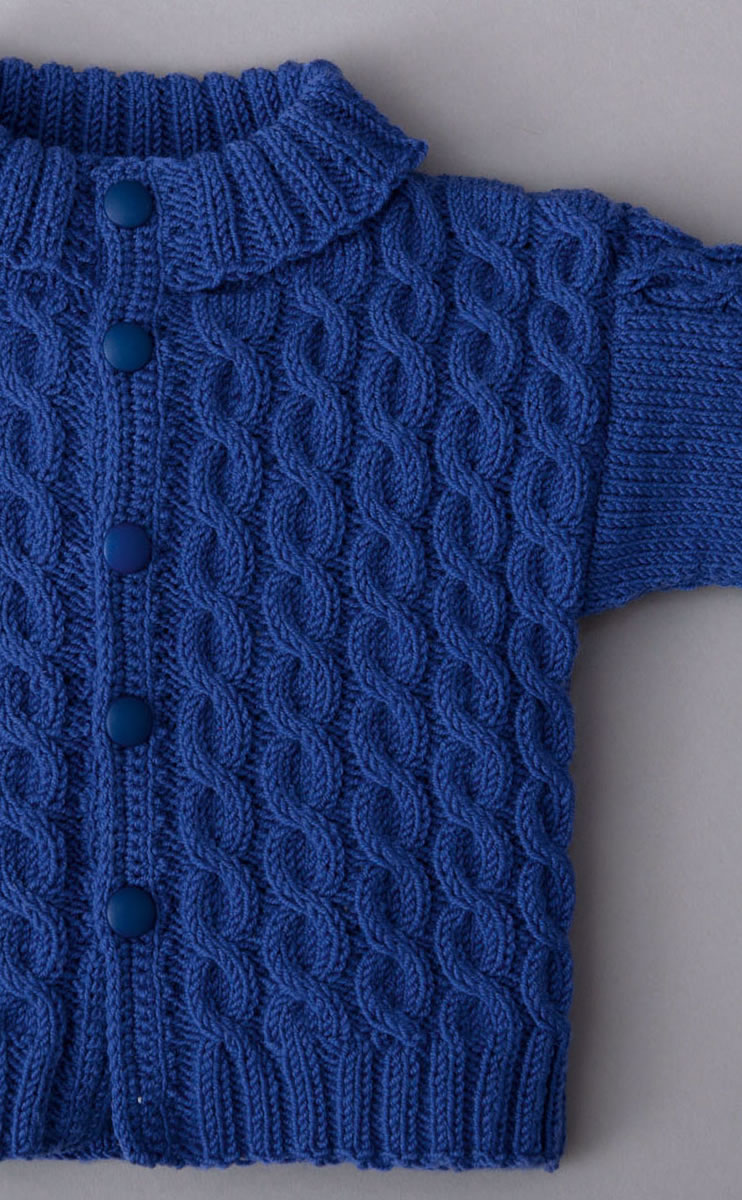 100 (100) 150 г темно-синей (цв. 250) пряжи Cool Wool Baby (100% шерсти, 220 м/50 г) фирмы Lana Grossa; прямые спицы № 3; круговые спицы № 3 длиной 40 см; крючок № 3; пять пуговиц