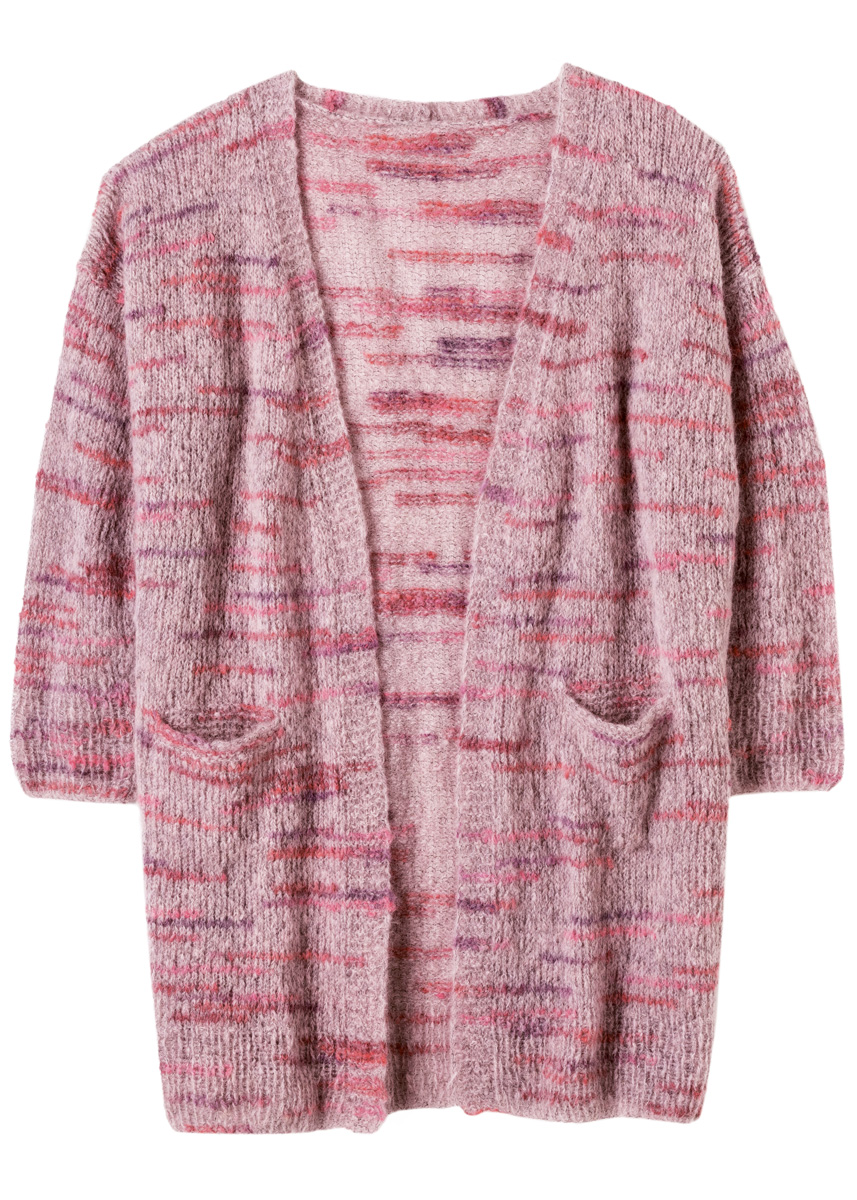 250 (300–300) г розовой/клубничной (цв. 1) пряжи Lala Berlin Hazy (40% альпака бэби, 25% шерсти мерино экстрафайн, 25% полиамида, 6% лиоцел- ла, 4% хлопка, 250 м/50 г) фирмы Lana Grossa; прямые спицы № 4,5
