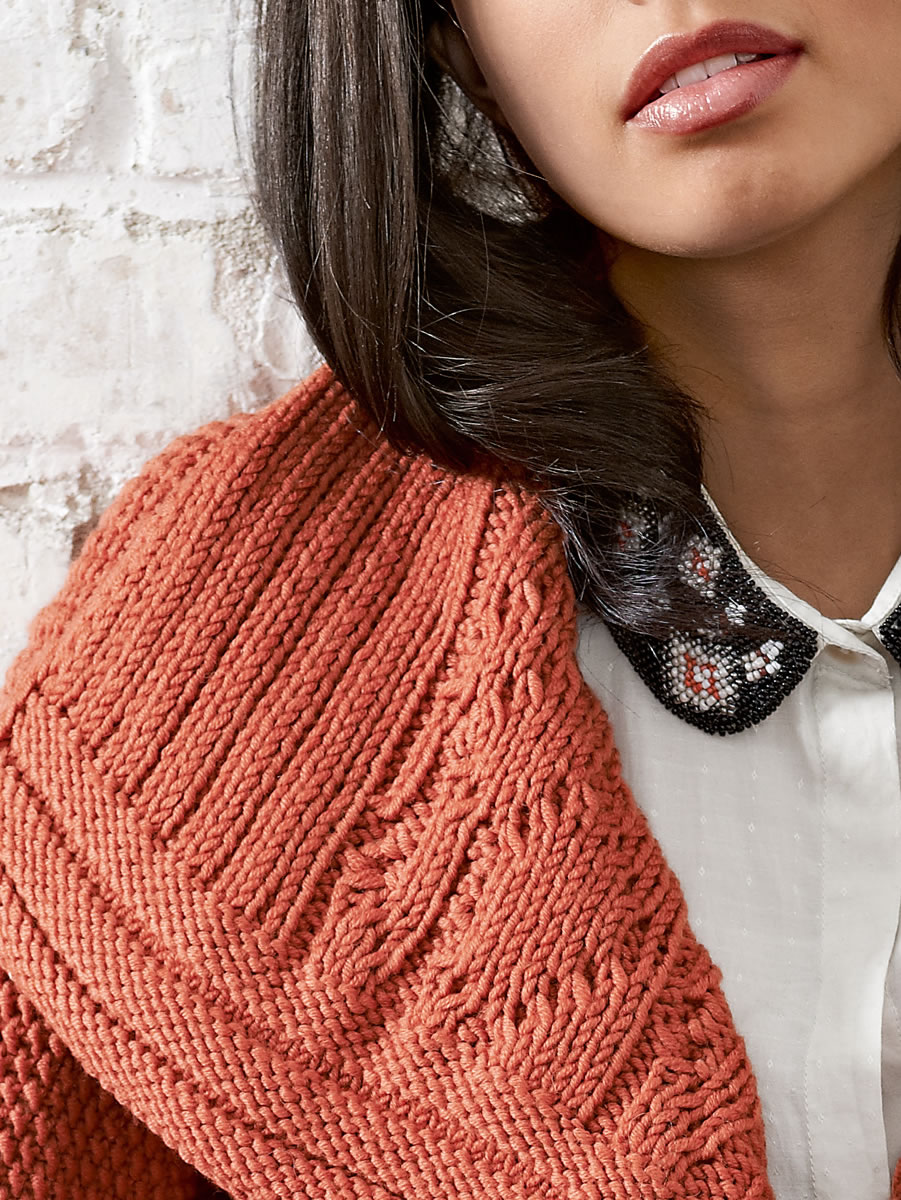 Классический узор из ромбов выглядит здесь экстравагантно и современно, ведь он выполнен поперек, благодаря чему и возникает декоративный воротник. Великолепно, просто, элегантно!