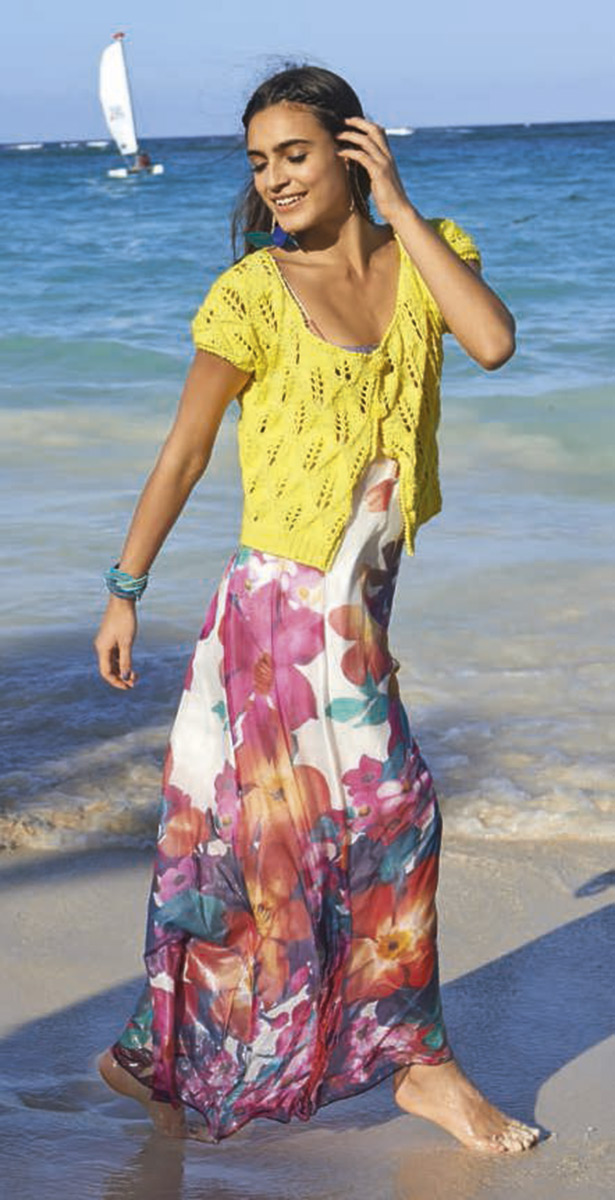 Солнце, пляж и море... Порой, достаточно просто добавить цвета, чтобы любая, даже несложная модель заиграла ощущением радости и легкости бытия. Лучистый желтый превращает летний топ в модный дорогой наряд. Лаконичный ажурный узор и женственный дизайн еще раз доказывают, что вязаные вещи весьма чувственны