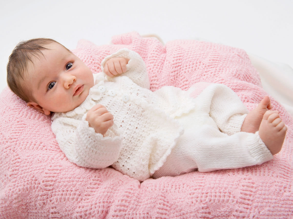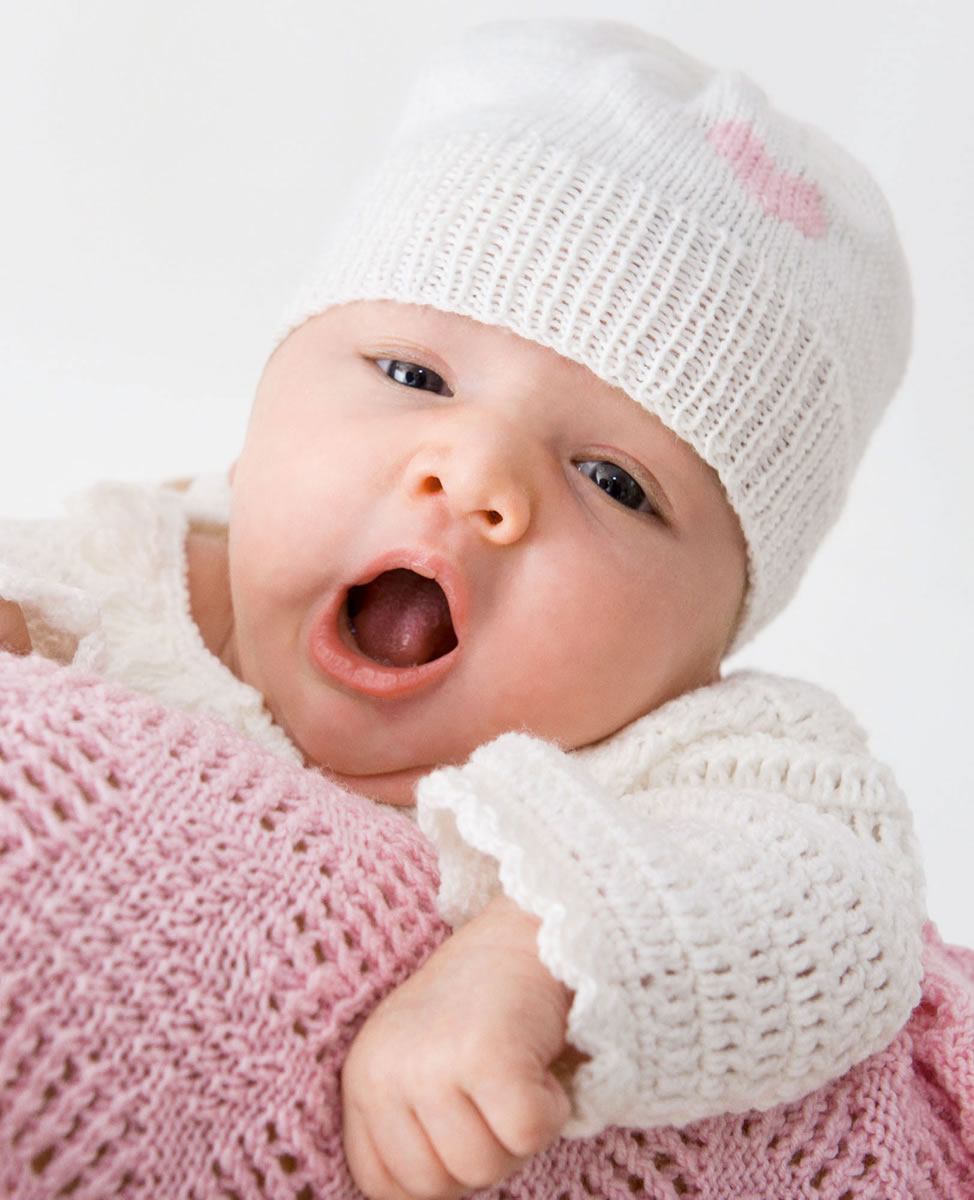 200 (200) 250 г белой (цв. 207) и остаток розовой (цв. 216) пряжи Cool Wool Baby (100% шерсти, 220 м/50 г) фирмы Lana Grossa; прямые спицы № 3; круговые спицы № 3 длиной 40 см; чулочные спицы № 3; крючок № 3 и № 4; три пуговицы.
