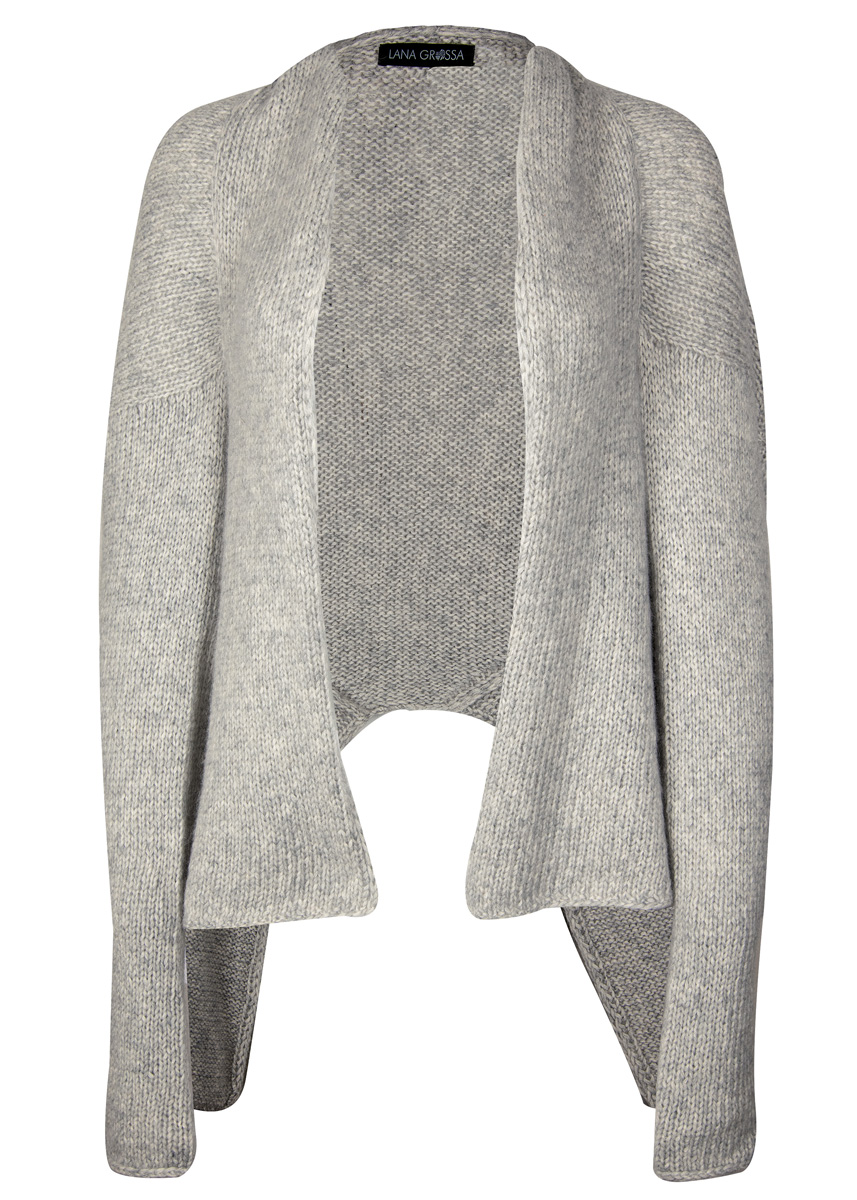 450 (500) г серебри- сто-серой (цв. 13) пряжи Brigitte No. 2 (47% шерсти (ягненка) альпака, 45% хлопка, 8% овечьей (мериносовой) шерсти, 140 м/50 г) фирмы Lana Grossa; 2 пары круговых спиц № 6,5 длиной 80 см